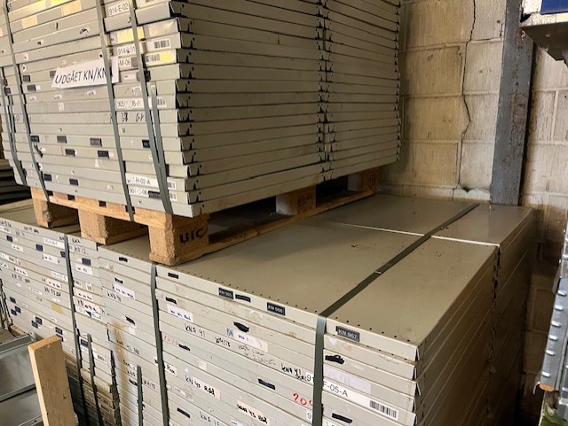 Hyldereol / stålreol / lagerreol / plukkereol /  arkivreol /  småvarereol – Ja – kært barn har mange navne. Vi har altid et stort lager af pæne brugte stål- og hyldereoler. Alsidig reol med mange muligheder, til opbevaring af kasser, reservedele, tøj, arkivmapper eller andre småvarer.